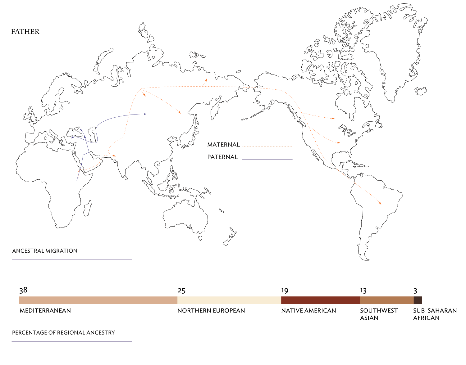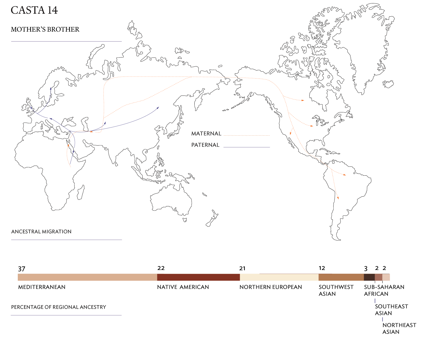 This extended family includes the parent’s five daughters with their families. Both the father (left) and the mother’s brother (not depicted) were DNA tested for their family Casta portrait.