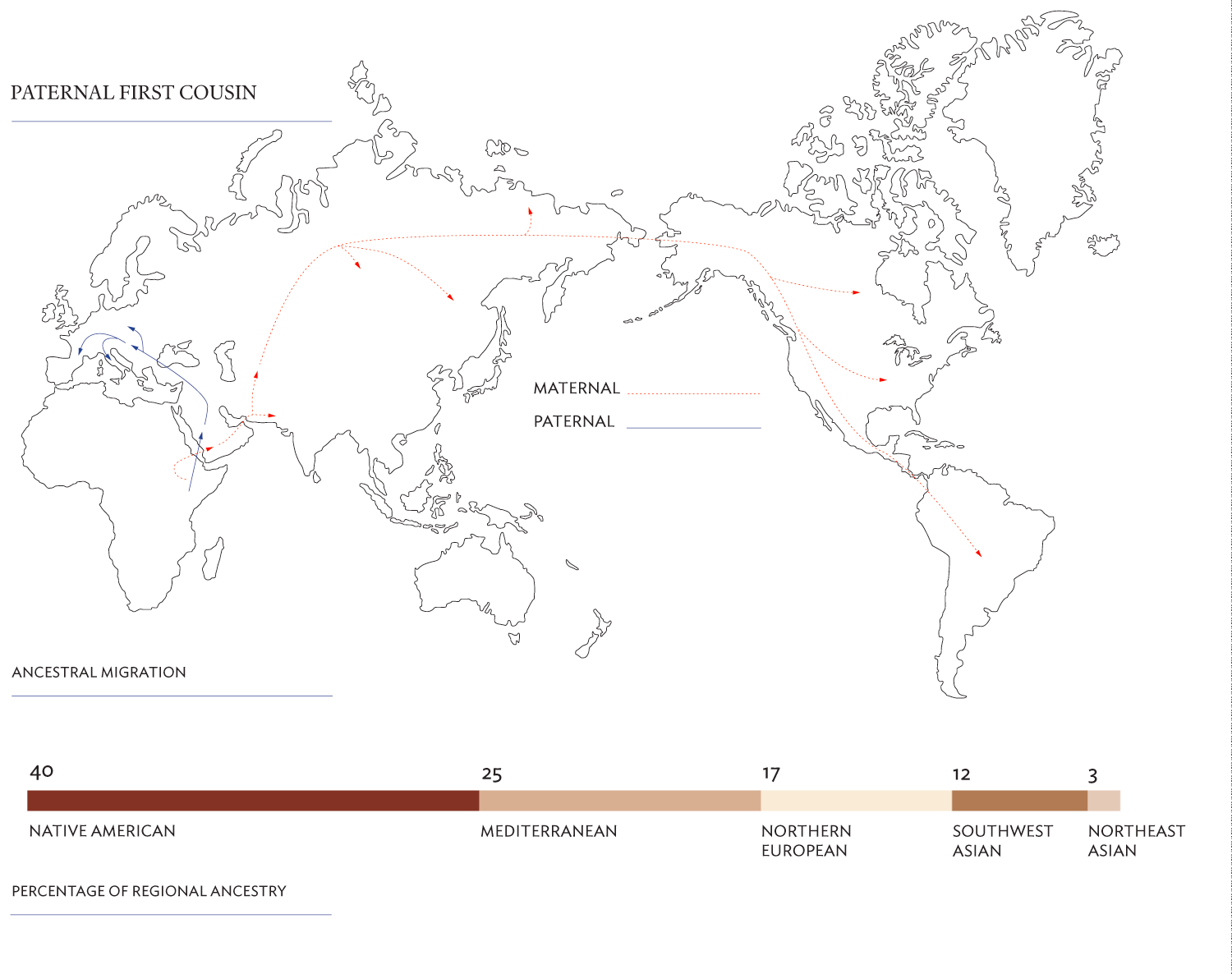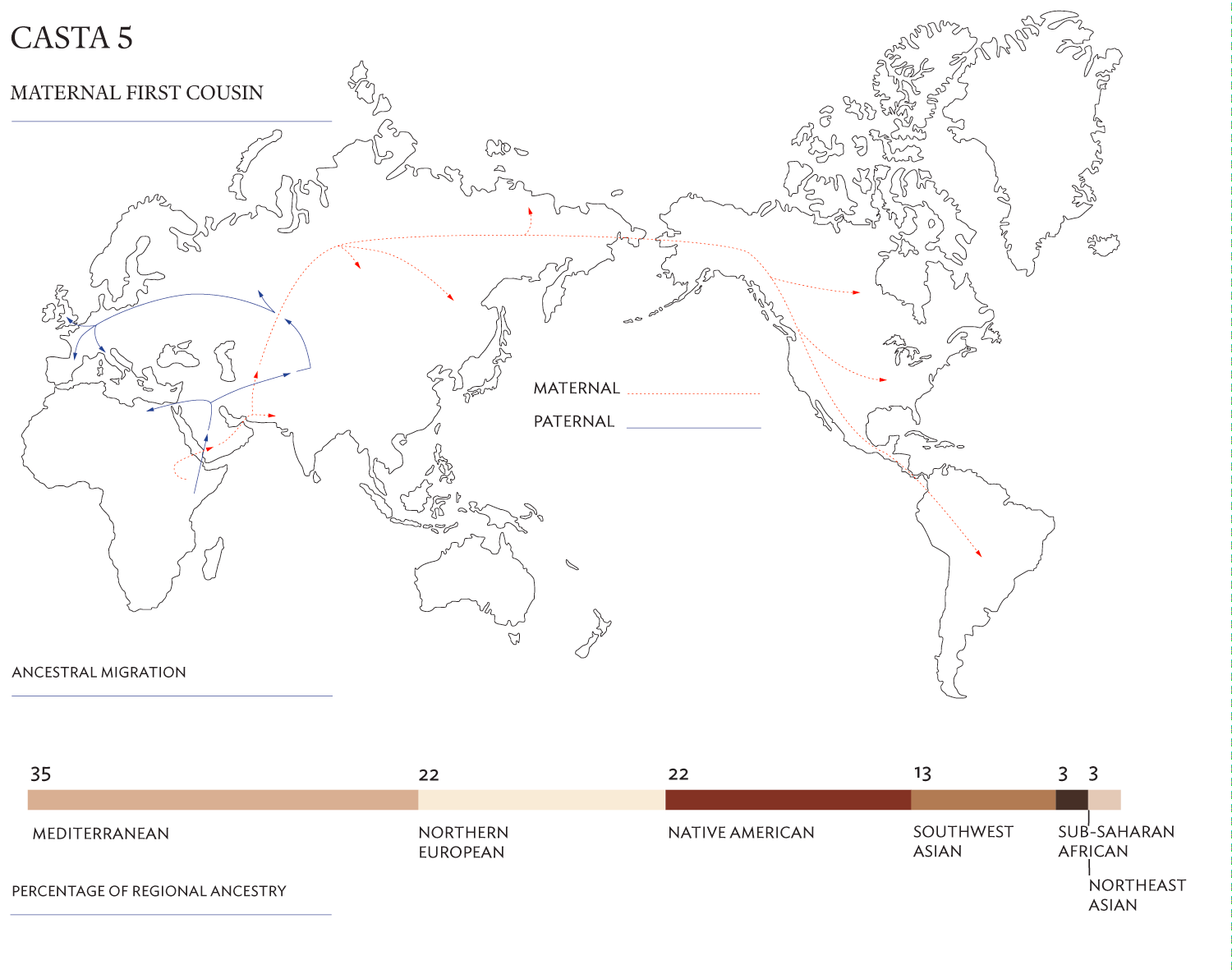 This modern extended family casta portrait of mother and daughter includes the stepfather along with a maternal first cousin and his wife. The maternal first cousin (left) as well as a paternal first cousin (not depicted) was DNA tested.