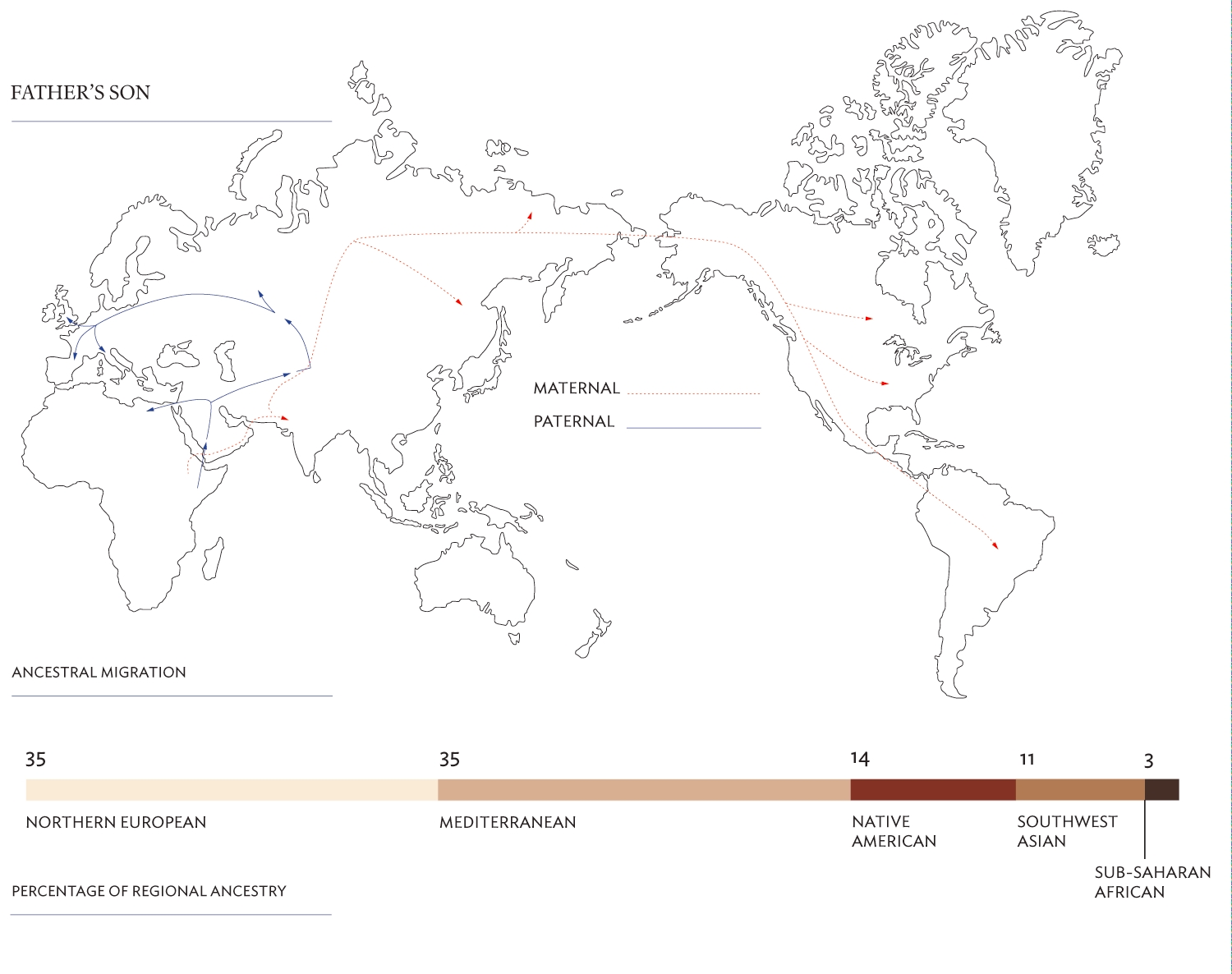 Each son (far left and right) from previous marriages was DNA tested for their extended modern family Casta portrait.